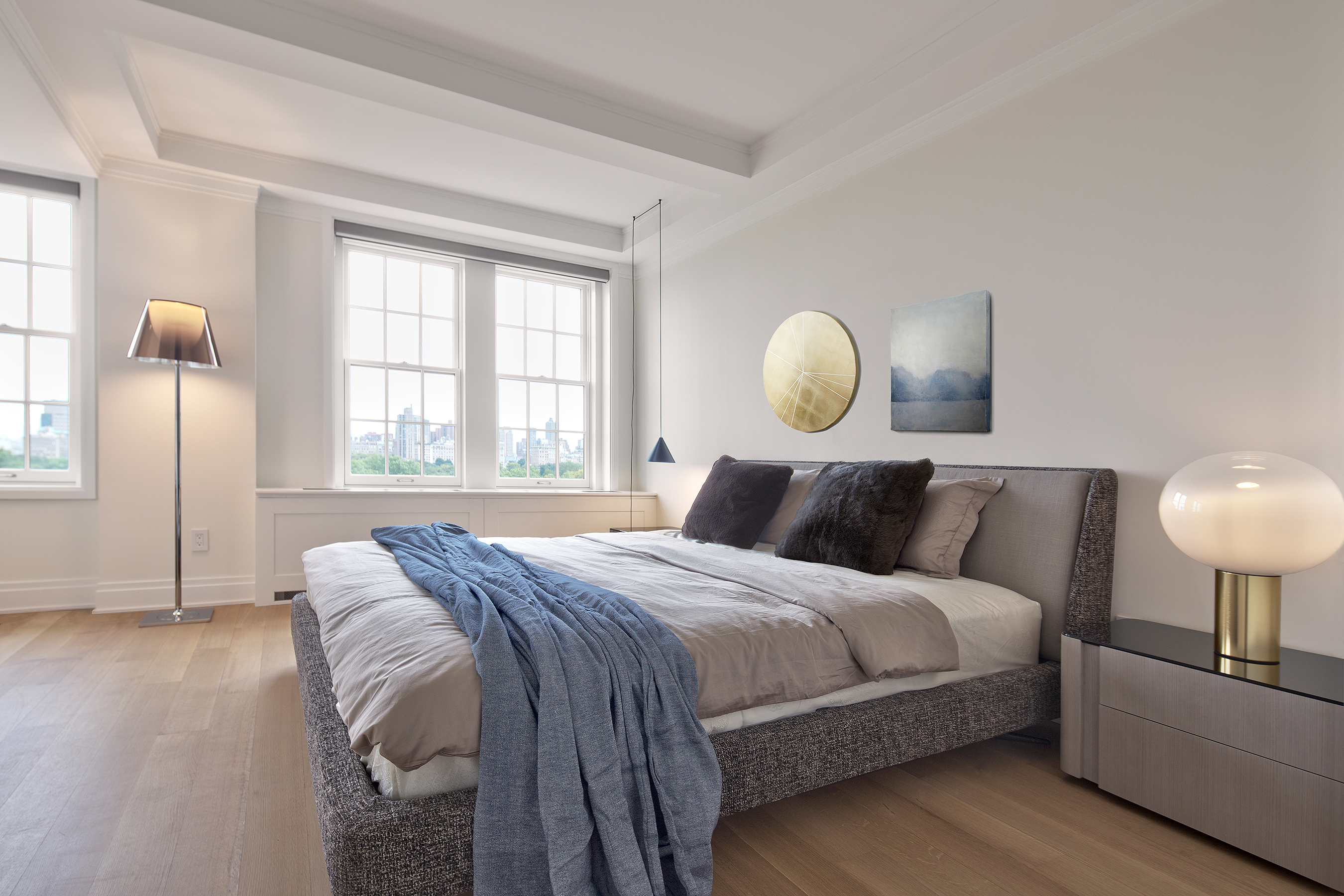 Contrary to popular mid-century and classic styles dominate the interiors spaces of this New York City neighborhood adjacent to central park, the four-bedroom condo space is simple and pure, infused with dynamic colors and fluid shapes brought by fixtures and contemporary art discreetly curated by the designers.